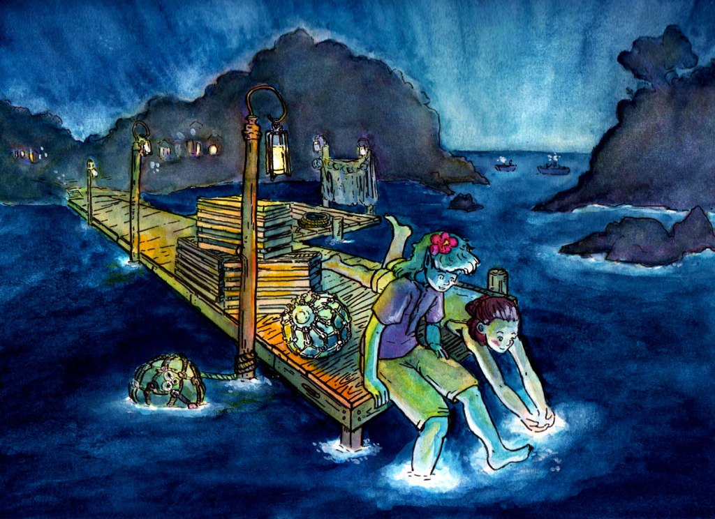 This was a class assignment for Creating Ink and Watercolor Illustrations with Bryce Kho. Kuretake Gansai Tambi watercolors, Kuretake Bimoji pens.